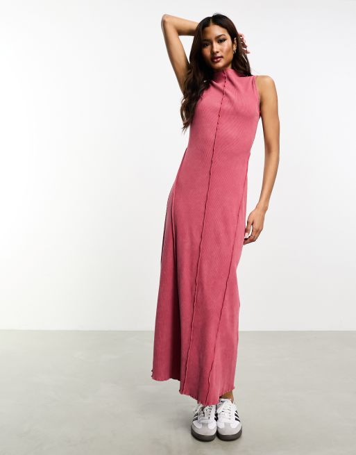 ASOS DESIGN sleeveless maxi dress with seam detail and lettuce edge in chili red