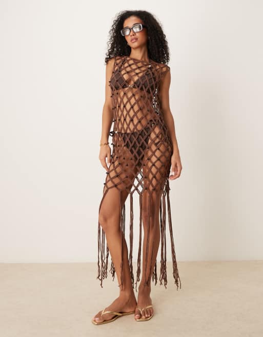 ASOS DESIGN sleeveless stitched mini dress with beads in chocolate