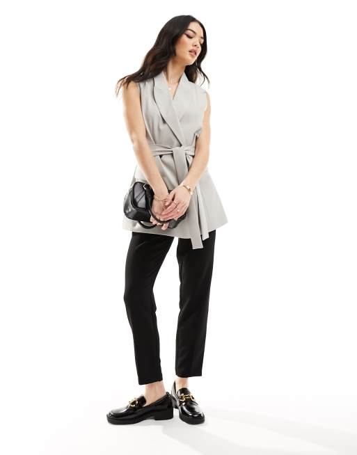 ASOS DESIGN sleeveless tailored blazer with tie waist in light gray