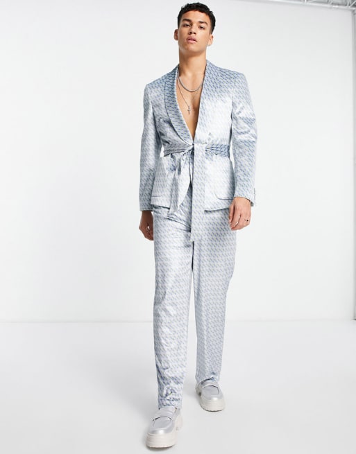ASOS DESIGN slim belted suit in lilac diamond pattern