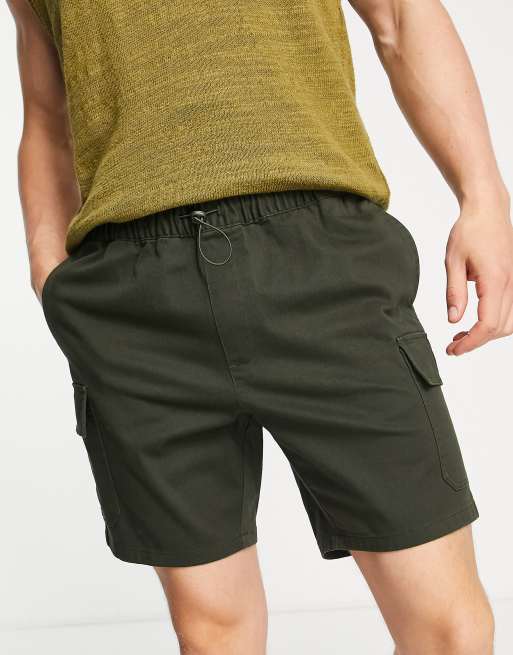 ASOS DESIGN slim cargo shorts in dark green