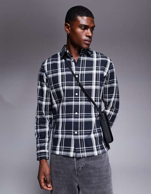 ASOS DESIGN slim check shirt in black