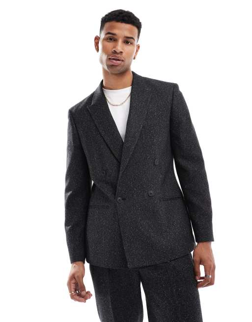 ASOS DESIGN slim double breasted herringbone suit jacket in black