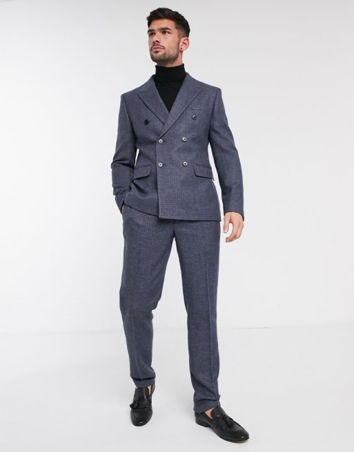 ASOS DESIGN slim double breasted suit in wool mix in blue tweed