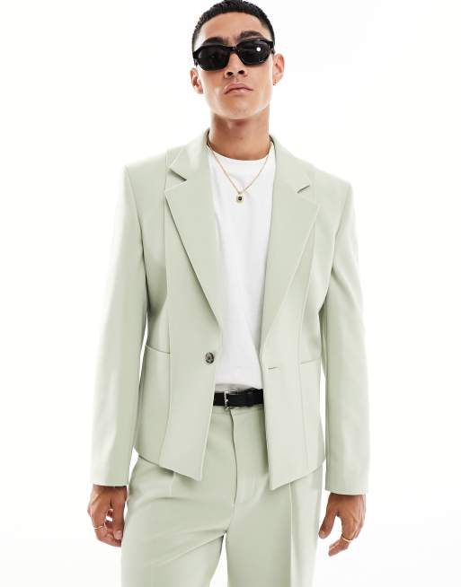 ASOS DESIGN slim fit suit jacket with panel detail in sage green