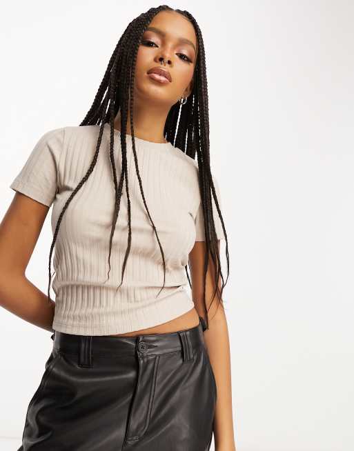 ASOS DESIGN slim fit t-shirt in rib in stone