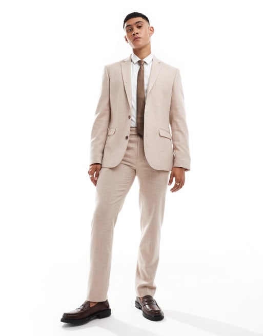 ASOS DESIGN slim fit wool mix suit in pink tweed