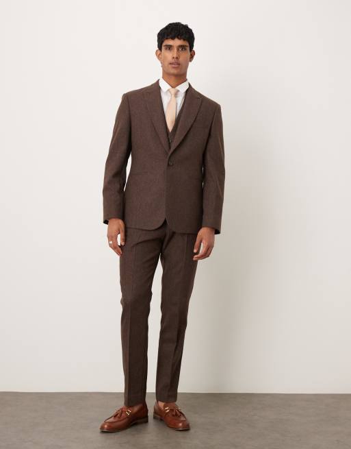 ASOS DESIGN slim herringbone suit with wool in brown