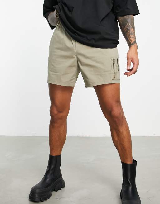 ASOS DESIGN slim nylon shorts in beige