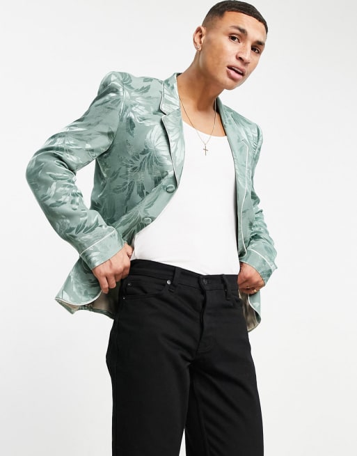 ASOS DESIGN slim pajama suit in floral sateen in green