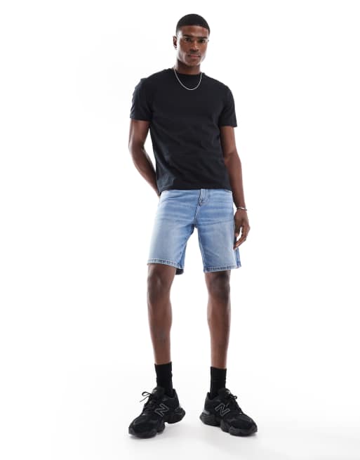 ASOS DESIGN slim regular length denim shorts in light wash blue