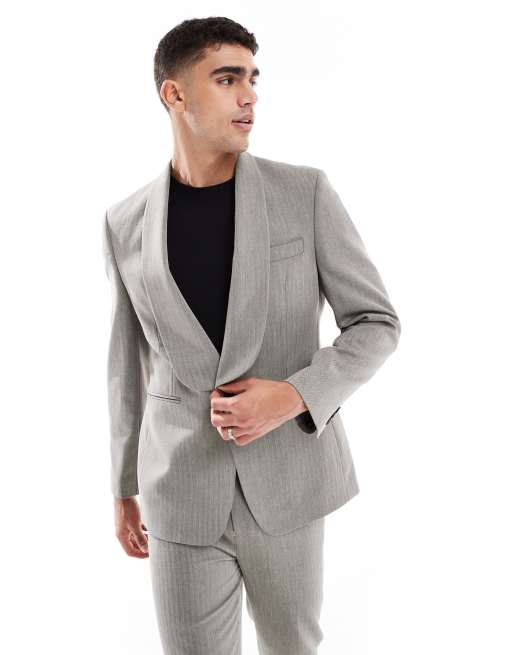 ASOS DESIGN slim shawl suit jacket with linen in gray herringbone