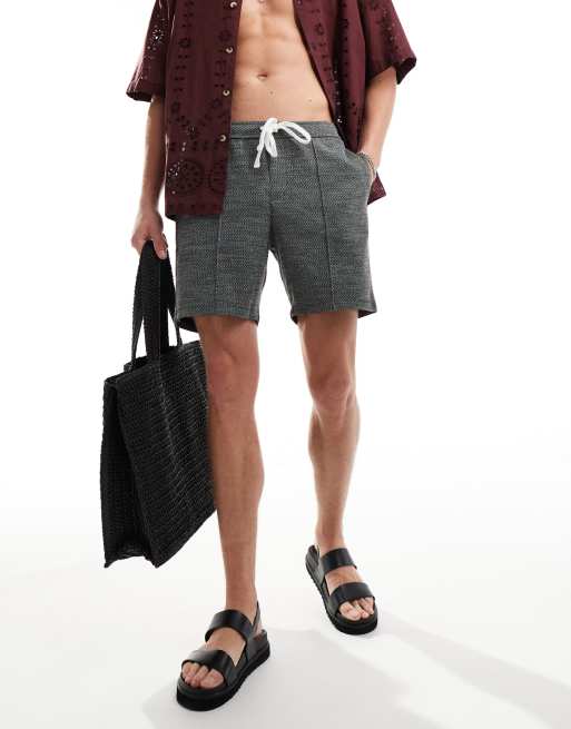 ASOS DESIGN slim shorts in black and white texture