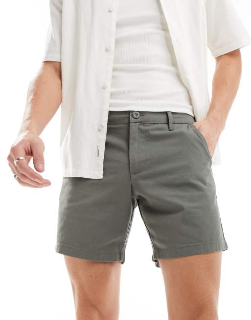 ASOS DESIGN slim stretch chino shorts in gray