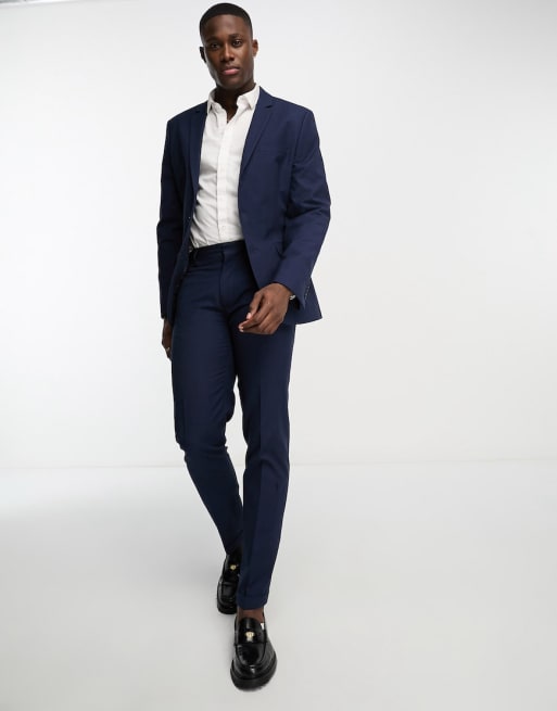 ASOS DESIGN slim suit in navy slubby texture