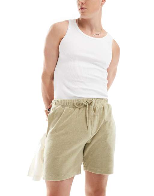 ASOS DESIGN slim terrycloth shorts in beige