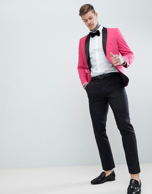 ASOS DESIGN slim tuxedo suit in bright pink with black contrast lapel