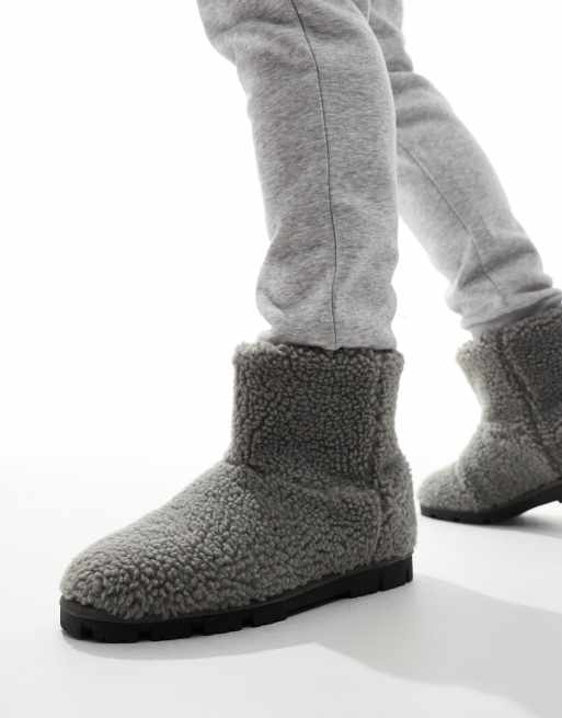ASOS DESIGN slipper boots in gray borg