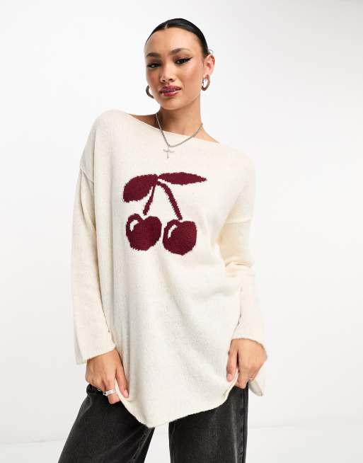 ASOS DESIGN slouchy cherry sweater in ivory