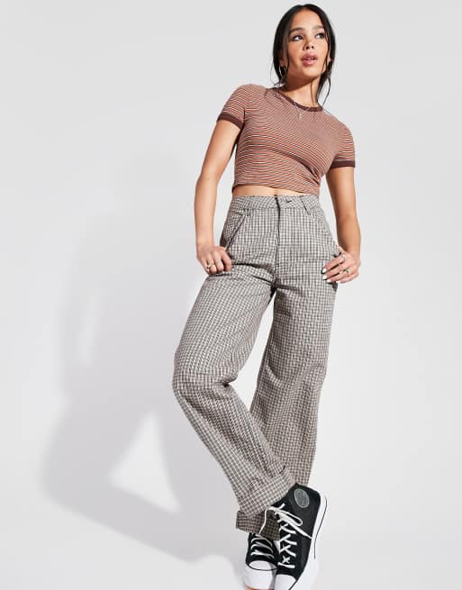ASOS DESIGN slouchy chino pants in brown plaid