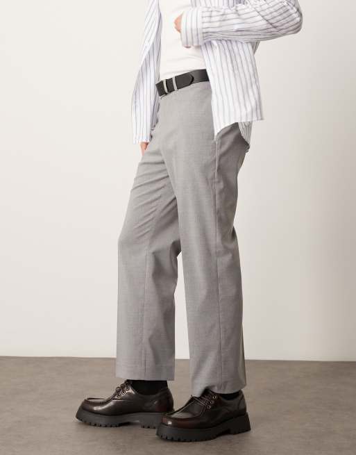 ASOS DESIGN smart cropped straight leg pants in gray melange