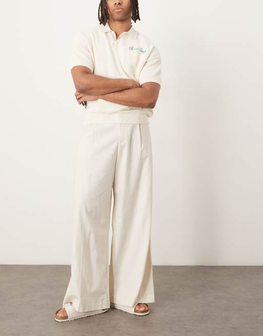ASOS DESIGN smart extreme wide leg linen blend pants with front pleat in white