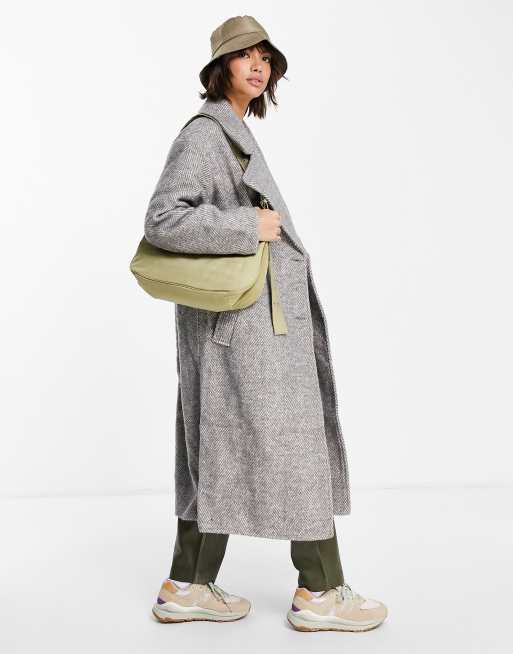 ASOS DESIGN smart herringbone oversized maxi coat in gray