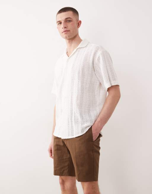 ASOS DESIGN smart linen rich slim shorts in dark brown