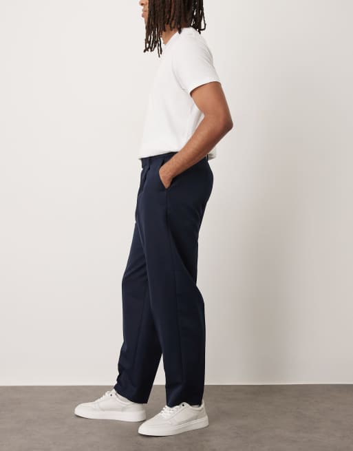 ASOS DESIGN smart oversized tapered pants with front pleats in navy
