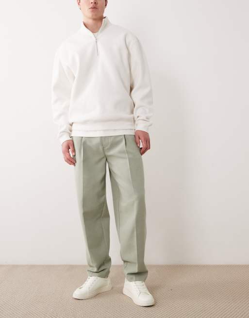 ASOS DESIGN smart oversized tapered pants with wool in sage green herringbone