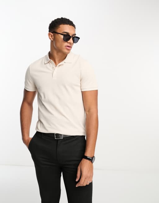 ASOS DESIGN smart pique polo shirt in stone