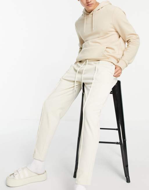 ASOS DESIGN smart pique tapered sweatpants with fixed hem & pin tucks in beige