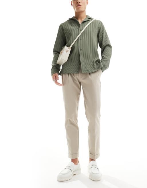 ASOS DESIGN smart premium slim fit chino pants with turn-up in ecru