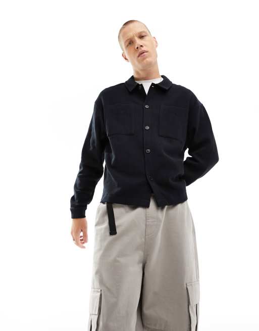 ASOS DESIGN smart ribbed jersey harrignton jacket in black