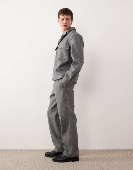 ASOS DESIGN smart set brushed twill straight pants in charcoal