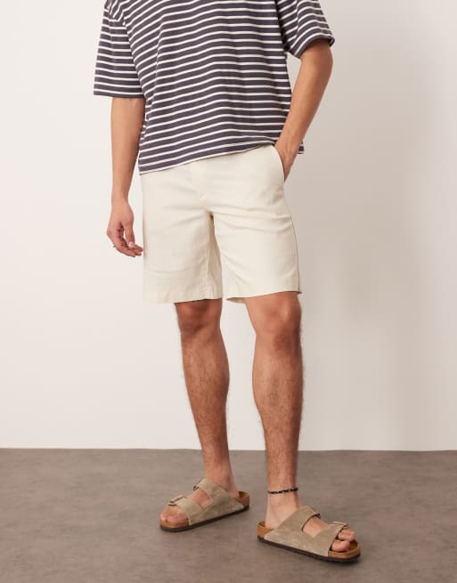 ASOS DESIGN smart straight fit linen blend shorts in ecru