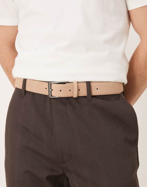 ASOS DESIGN smart suede belt with silver buckle in stone