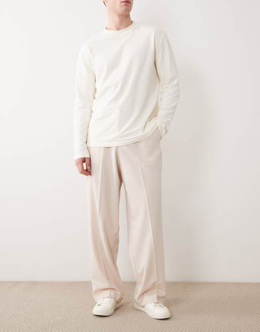 ASOS DESIGN smart wide leg comfort stretch pants in ecru twill with elastic waist