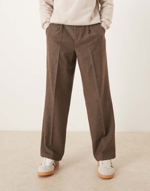 ASOS DESIGN smart wide leg double pleated pants with wool blend in brown