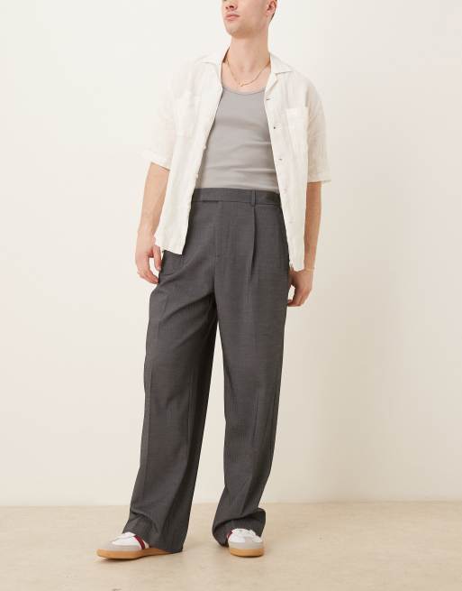 ASOS DESIGN smart wide leg pants with front pleat in gray herringbone with elastic waist