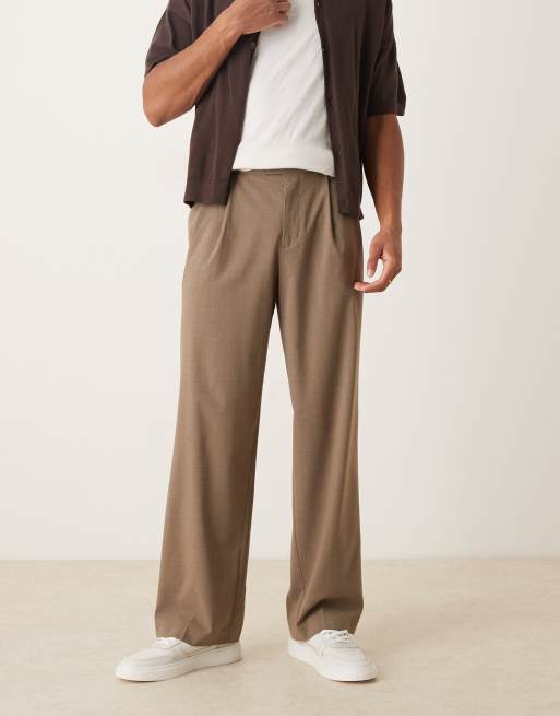 ASOS DESIGN smart wide leg pants with front pleats in light brown