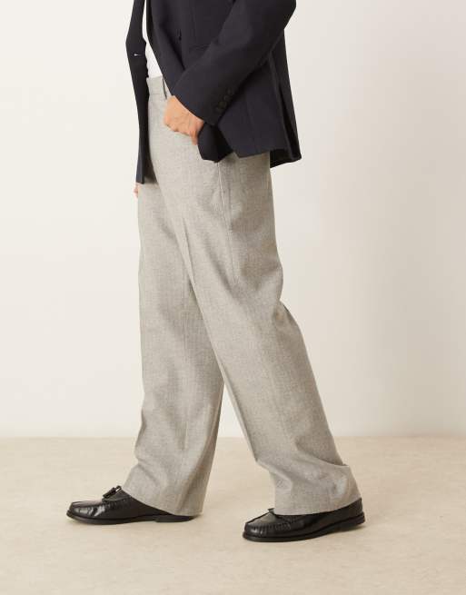 ASOS DESIGN smart wide leg wool blend pants in light gray pinstripes
