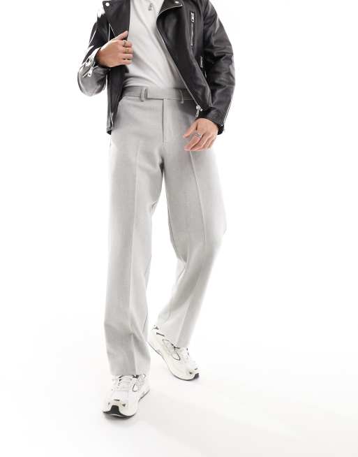 ASOS DESIGN smart wide leg wool mix pants in light gray herringbone