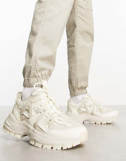 ASOS DESIGN sneakers with multi rubber panels and chunky sole in stone
