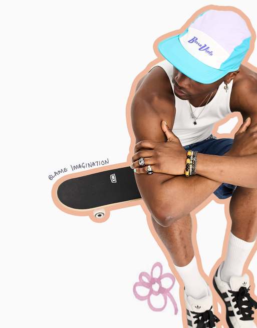 ASOS DESIGN soft 5 panel cap with contrast panels in multicolor