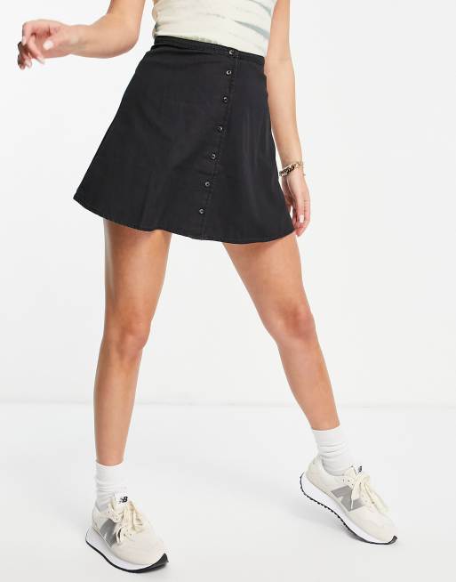 ASOS DESIGN soft denim button through skirt in washed black - part of a set