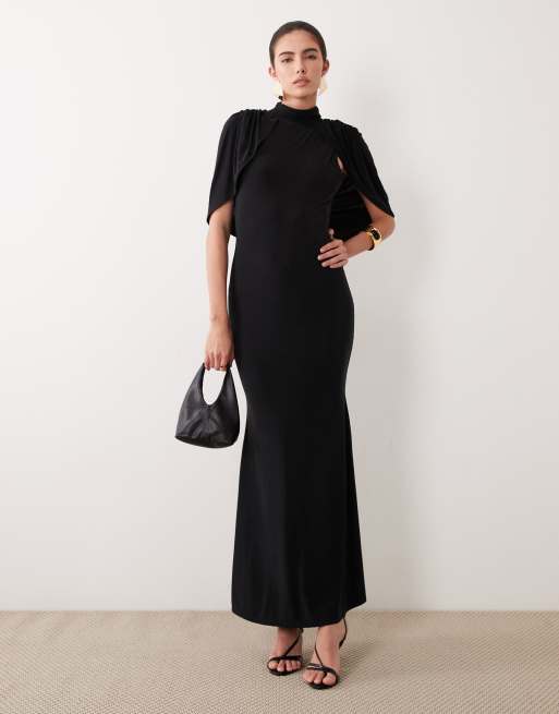 ASOS DESIGN soft touch cape sleeve detail puddle maxi dress in black