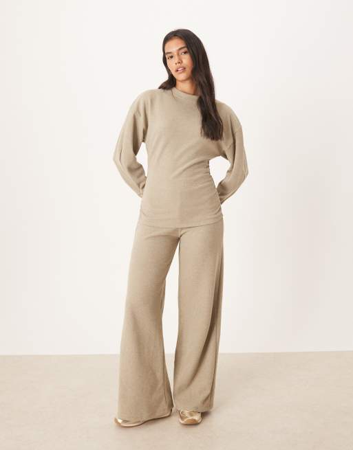 ASOS DESIGN soft touch cinched waist set in taupe heather