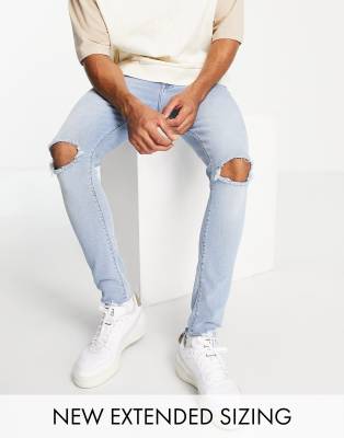 ASOS DESIGN spray on jeans in power stretch in light wash with knee rips and raw hem