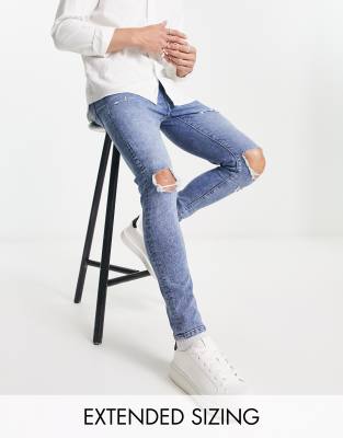ASOS DESIGN spray on jeans with power stretch in mid wash with knee rips and abrasions